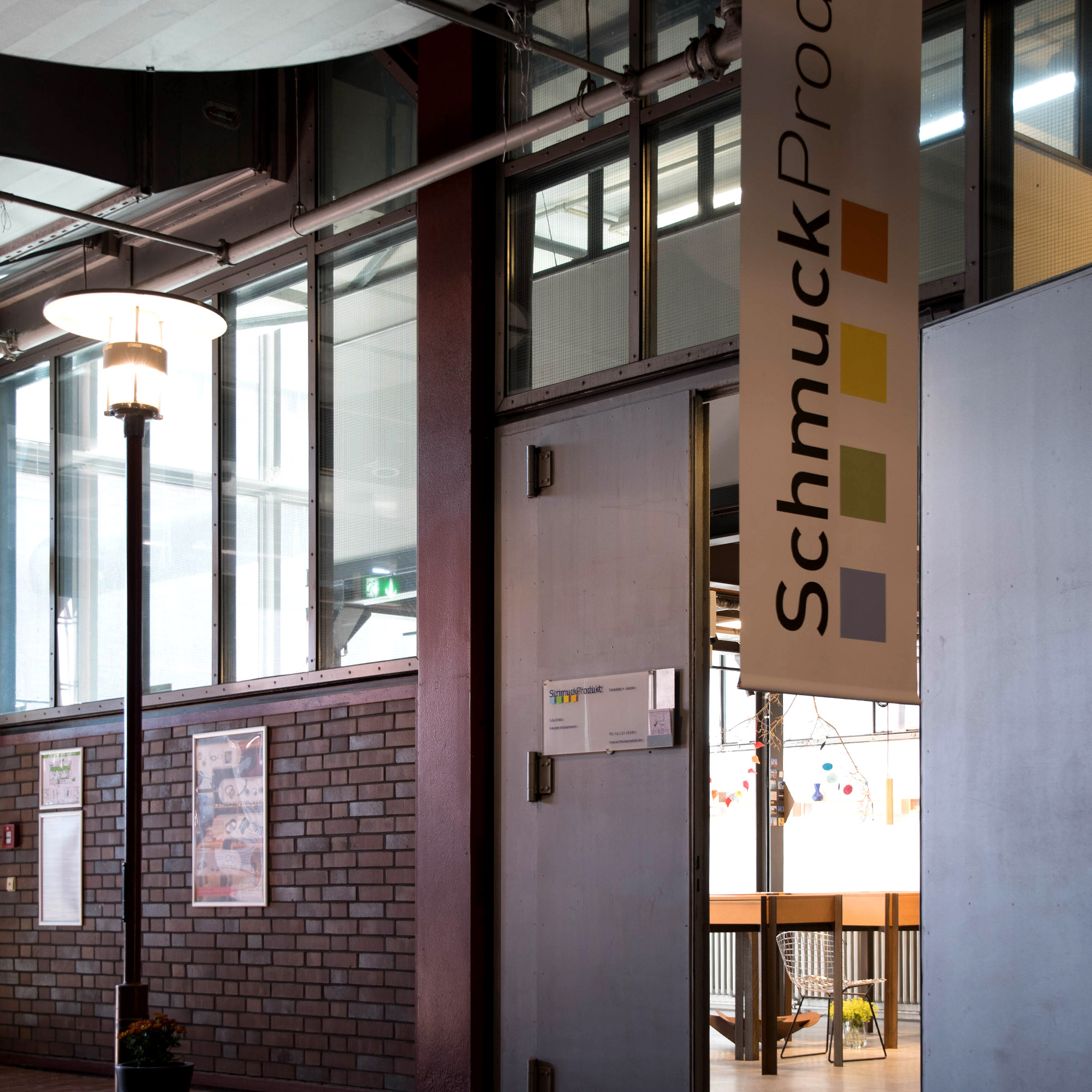 1998 haben wir mit unserer Galerie und Werkstatt eine der ersten sanierten Hallen im Zentrum der Zeche Zollverein bezogen: Unmittelbar hinter dem Doppelbock-Fördergerüst, Wahrzeichen des UNESCO-Welterbes und der Region. Mit seinen Räumen in Halle 12, der ehemaligen Lesebandhalle, gehört SchmuckProdukt so fast von Beginn an und bis heute zur kreativen Industriekultur im Ruhrgebiet.